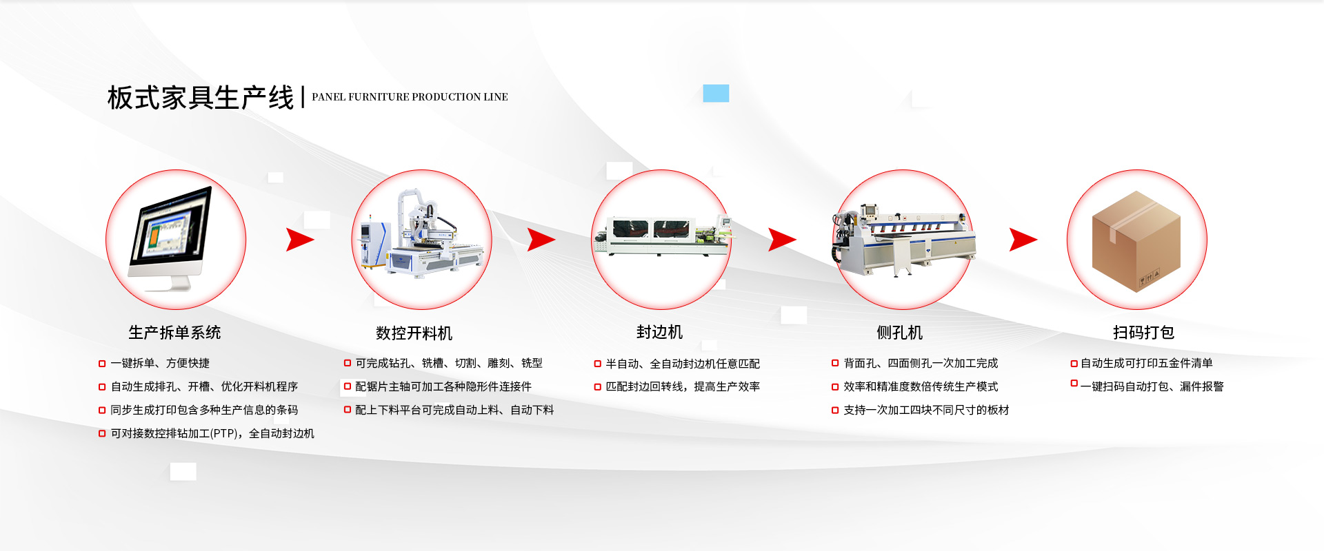 全自動(dòng)開料機(jī)作為數(shù)控智能化加工設(shè)備,在加工效率提升、加工質(zhì)量提高等方面做出了很大的改變,憑借這些優(yōu)勢(shì),在市場(chǎng)上深受廣大客戶的喜愛和歡迎... 閱讀詳情 >>板式家具廠要打造工業(yè)4.0的生產(chǎn)線,就要將開料、封邊、鉆孔、分揀、包裝等流程實(shí)現(xiàn)自動(dòng)化、流水化。 >>