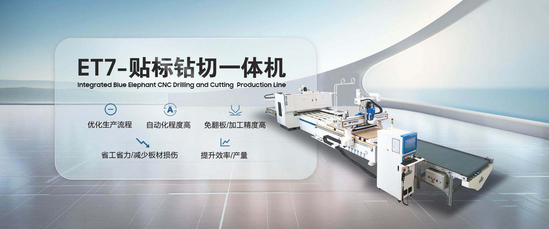 藍(lán)象數(shù)控(BLUE ELEPHANT)是一家自動(dòng)化木工設(shè)備及數(shù)控設(shè)備研發(fā)、制造、銷售、售后服務(wù)于一體的高新技術(shù)企業(yè),為客戶量身打造個(gè)性化需求的自動(dòng)化設(shè)備解決方案。主營(yíng)全自動(dòng)封邊機(jī)、板式家具生產(chǎn)線、數(shù)控開料機(jī)、木工開料機(jī)、數(shù)控排鉆設(shè)備等產(chǎn)品。